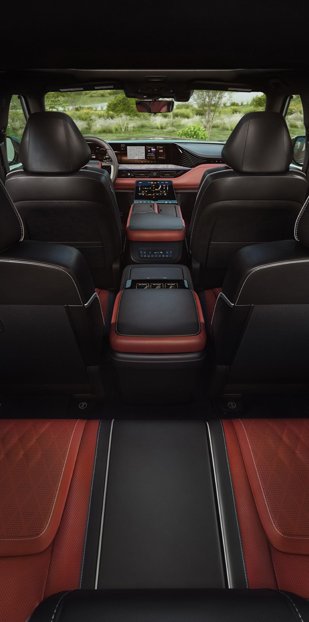 Asientos ventilados y con calefacción, masaje en la primera y segunda fila, el Nuevo INFINITI QX80 Autograph permite que todos sus invitados elijan su propio nivel de comodidad. El panel de control trasero con pantalla táctil y respuesta háptica facilita aún más el acceso a estas opciones.